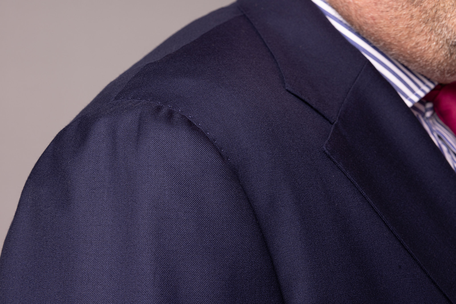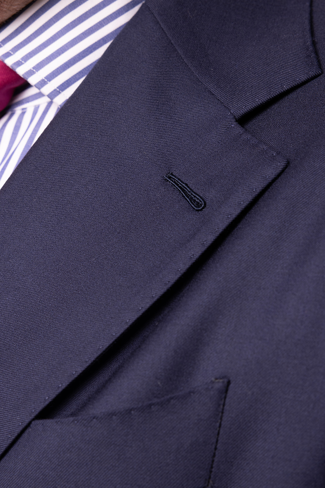 • Hand-gepikeerde revers & hand-gestikte mouwkop